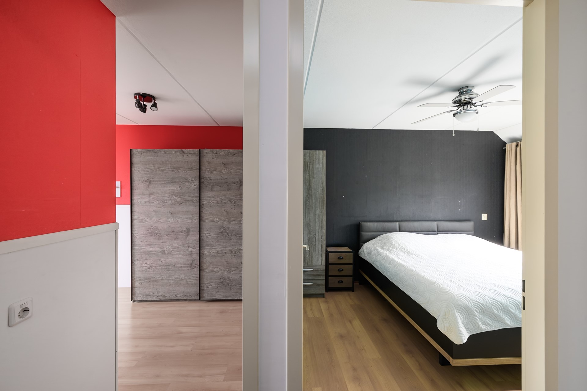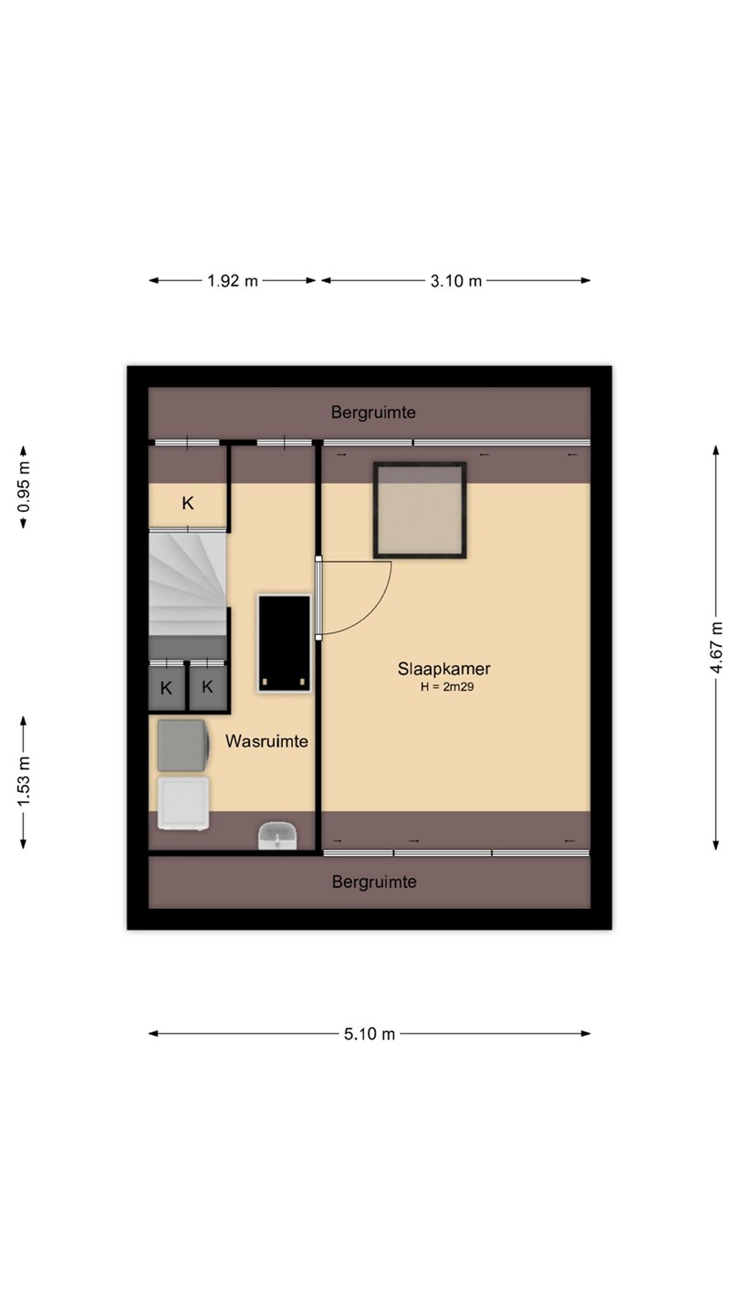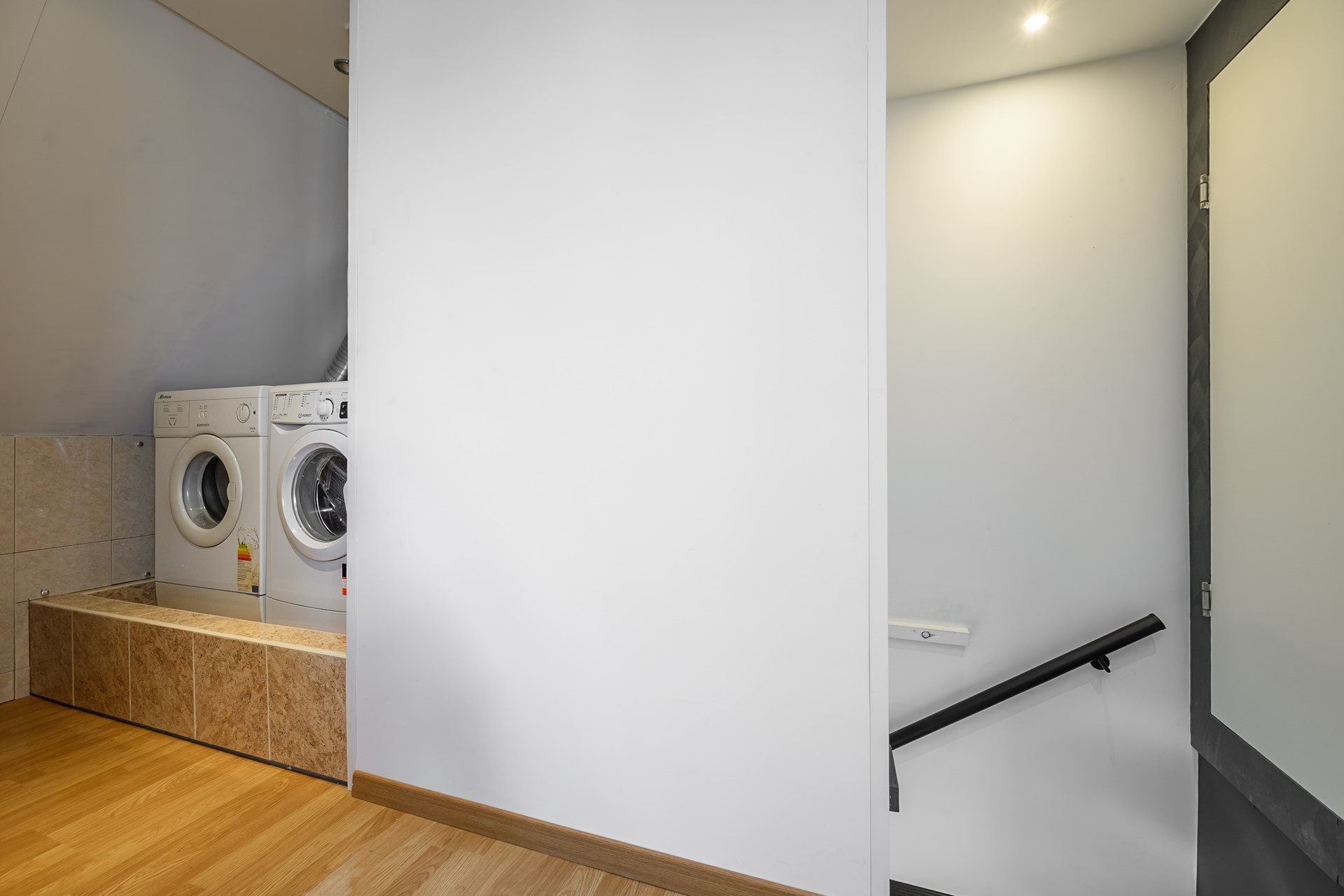 A pleasant and spacious attic floor with a very spacious bedroom; this is also equipped with a new Keylite skylight with an integrated pleated blind. The extra loft, accessible via a loft ladder, can be used as additional storage space. The washing machine and dryer connections, the mechanical ventilation system, and the inverter for the 12 (2-group) solar panels are also located in the attic.