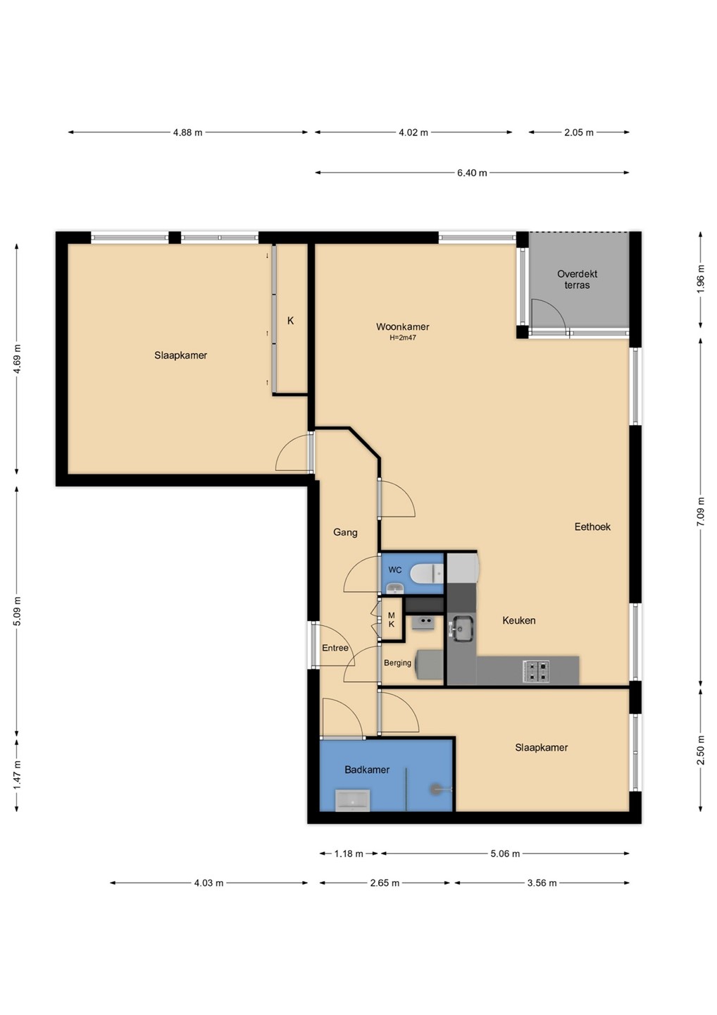 • 2 slaapkamers