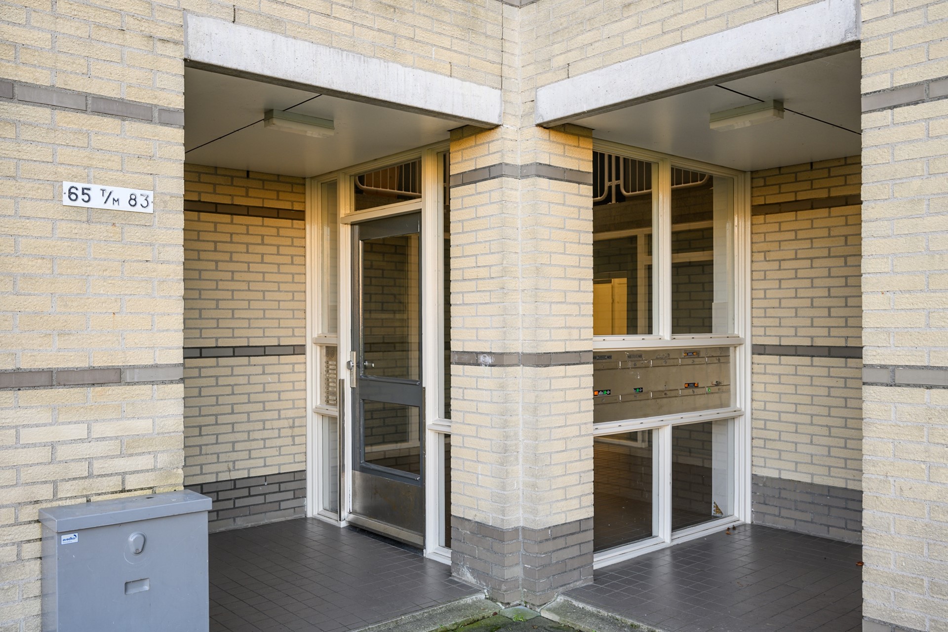Begane grond: Centrale entree/ hal met brievenbussen, bellentableau, trappenhuis, inpandige bergingen en het appartement.