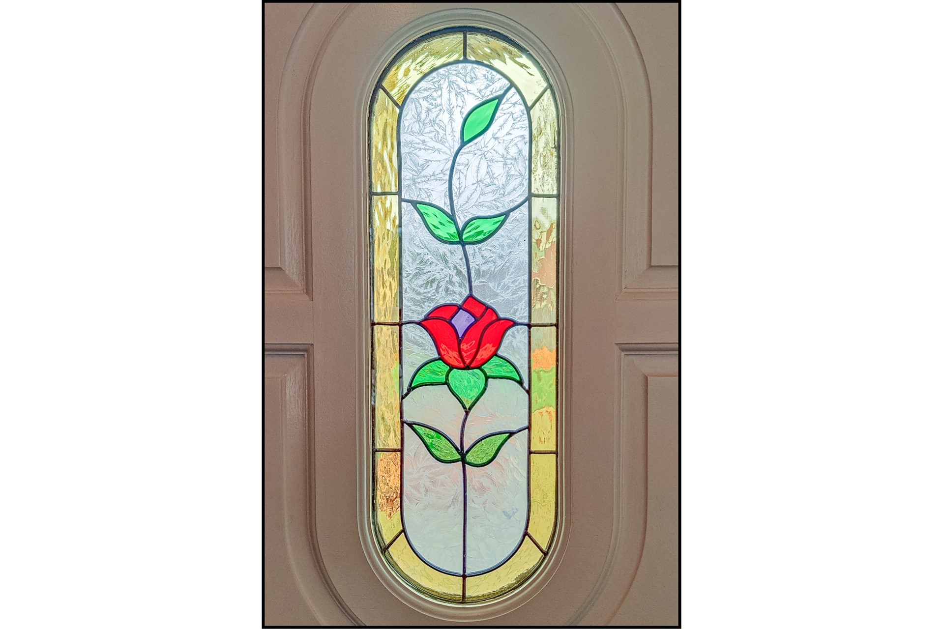 The garden-facing living room has a staircase/pantry and beautiful sliding doors leading to the private and fully paved backyard with a storage shed.