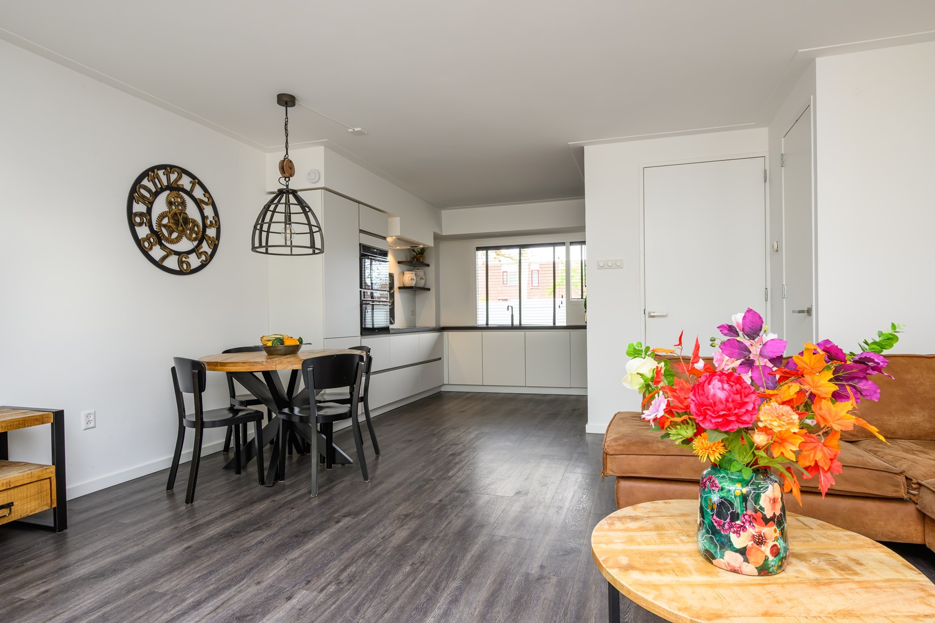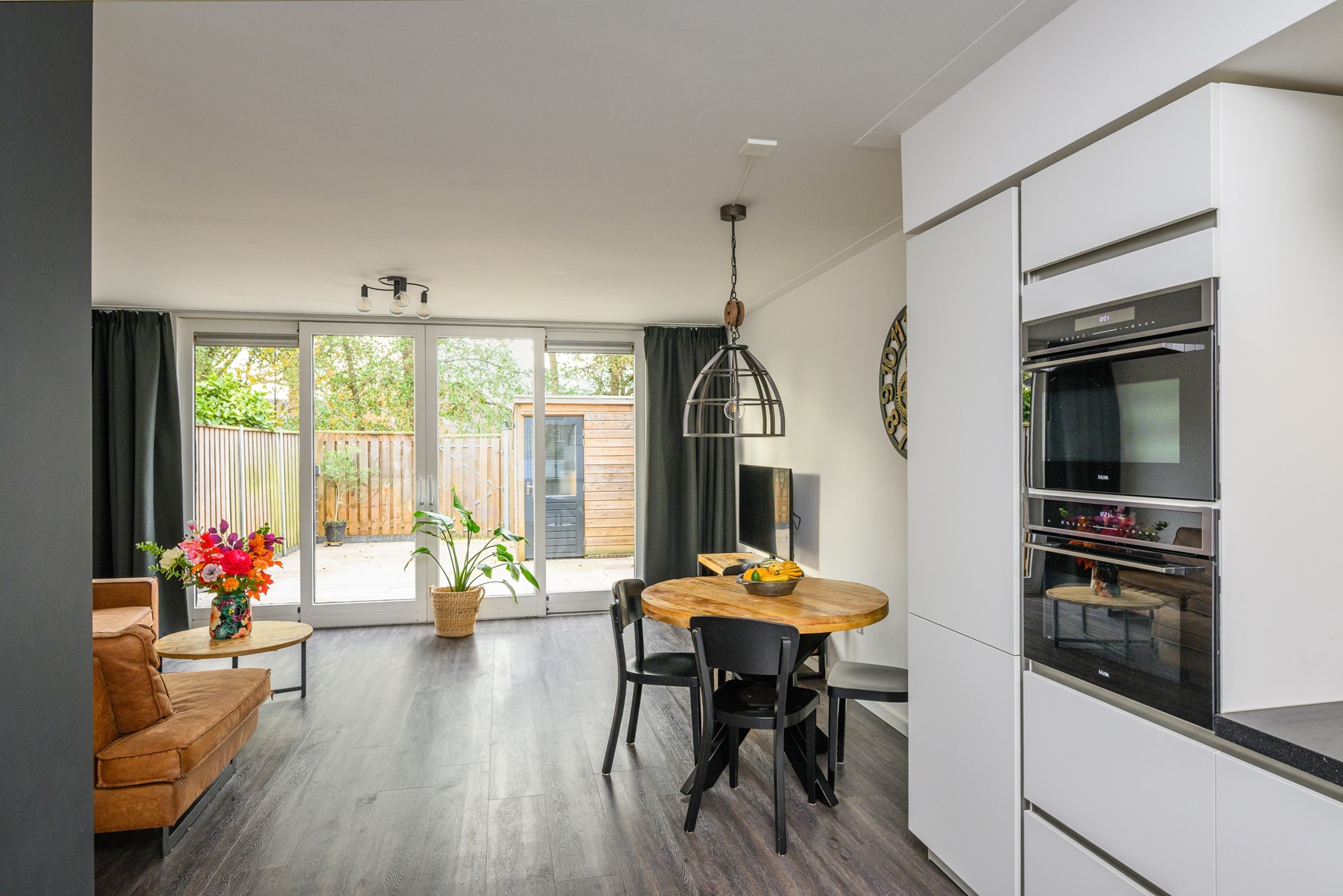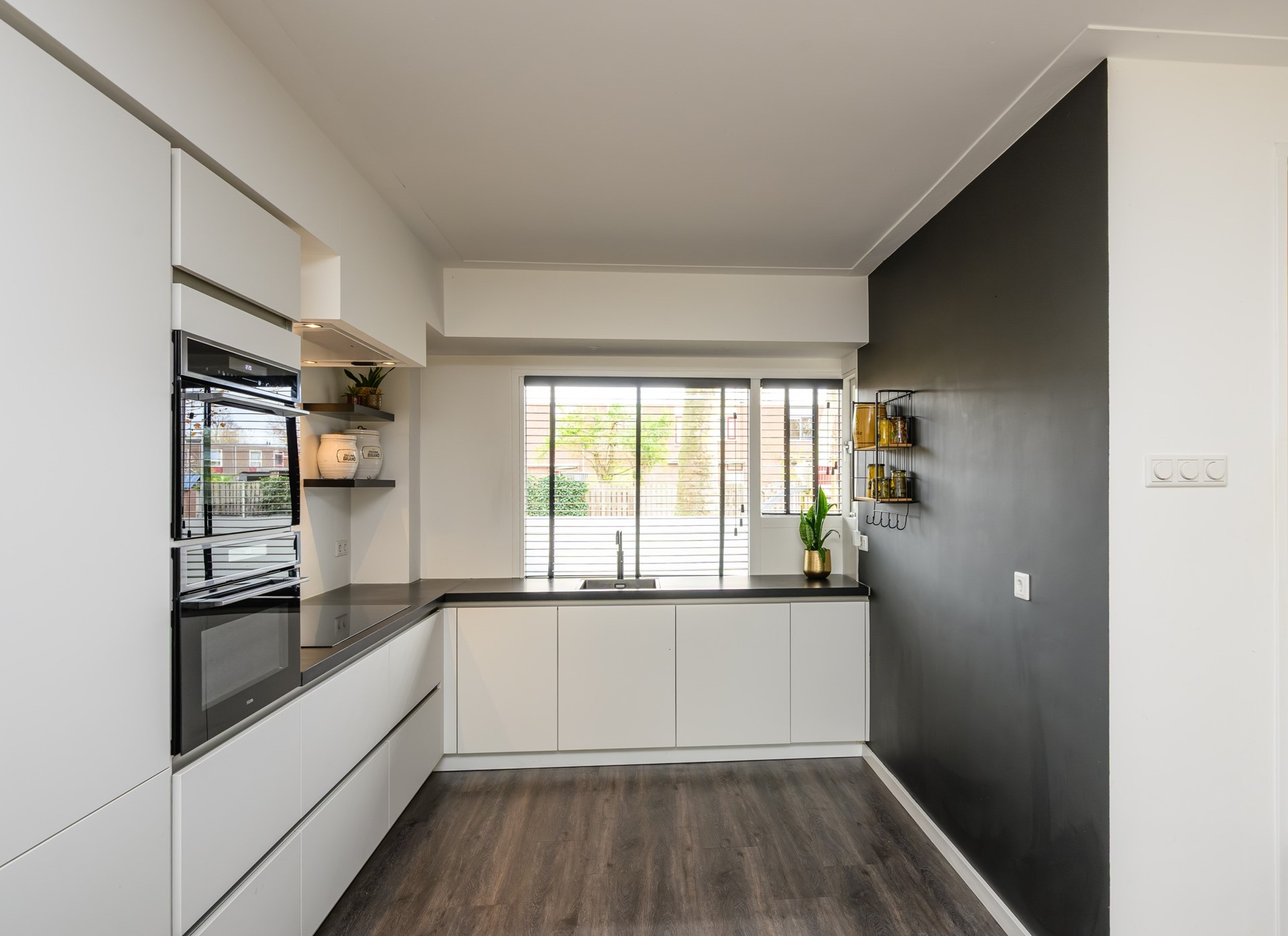 De open moderne inbouwkeuken (2021) heeft een luxe uitstraling.