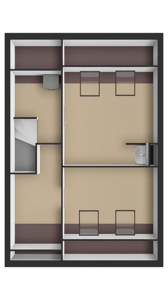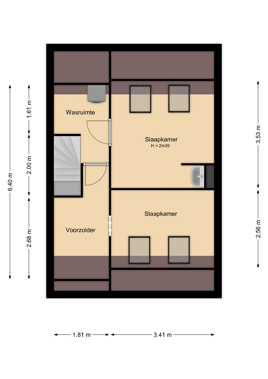 Royale zolderetage met een technische ruimte (incl. opstelplaats wasmachine/droger) en twee in grootte variërende slaapkamers, waarvan één kamer met een fraai wastafelmeubeltje.