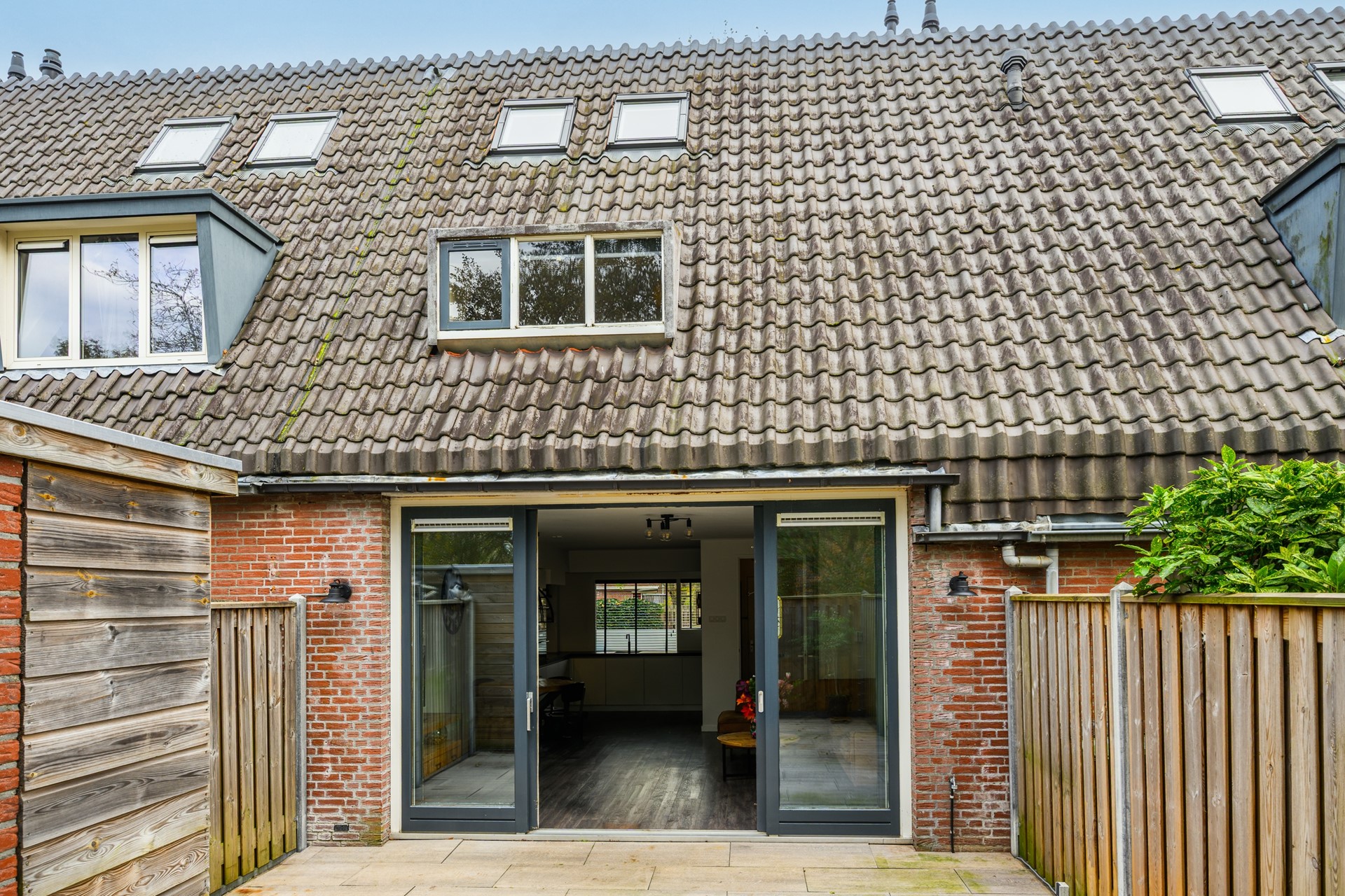 De tuingerichte woonkamer heeft een trap/provisiekast en een fraaie schuifpui naar de besloten-en volledig sierbestraatte achtertuin met een berging.