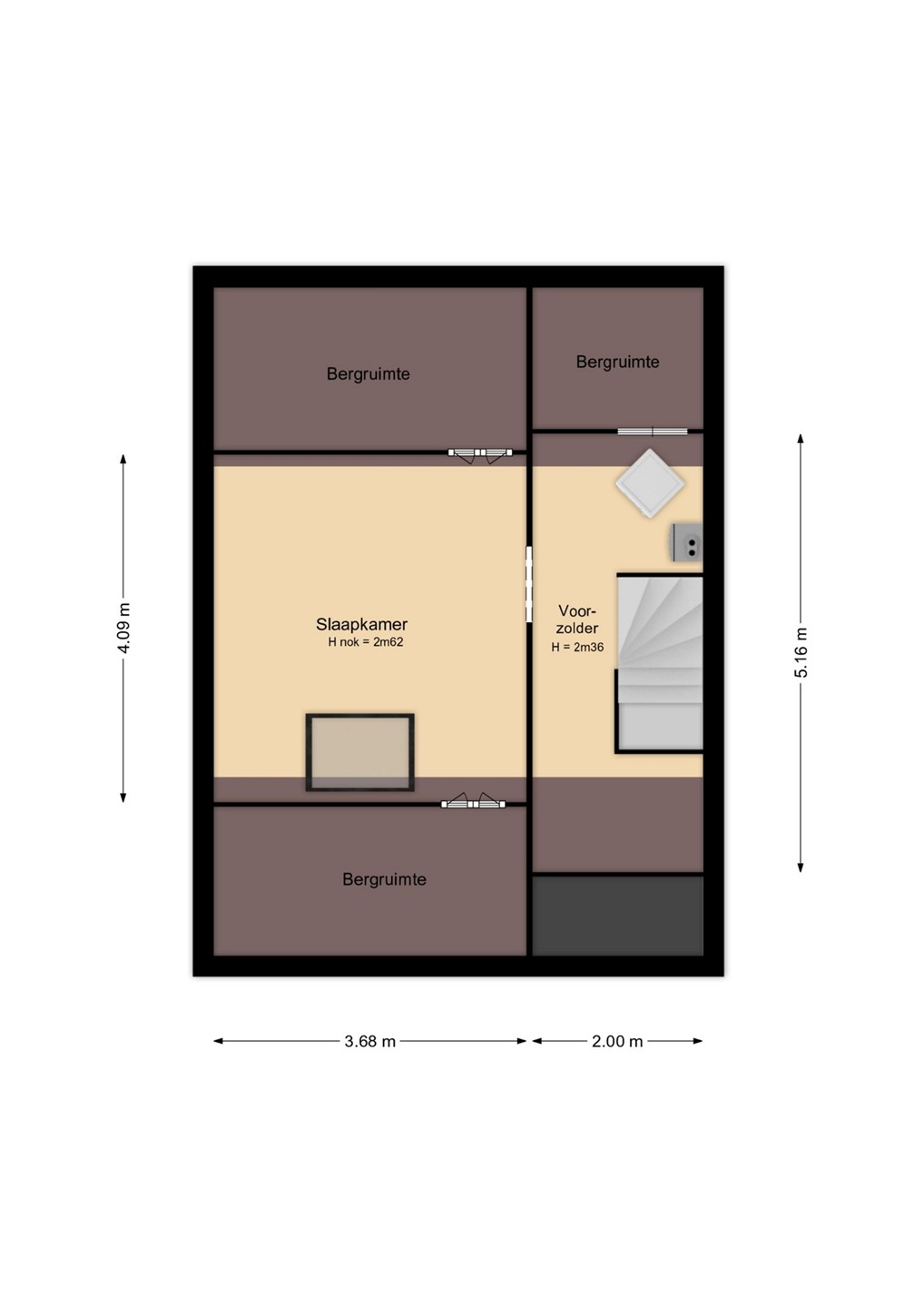 The second floor features a spacious landing where ample space can be created for a full laundry room. This area also houses the central heating boiler (Avag ‘2010) and provides access to the additional bedroom. Generous storage spaces are located along the entire width of the room on both sides.