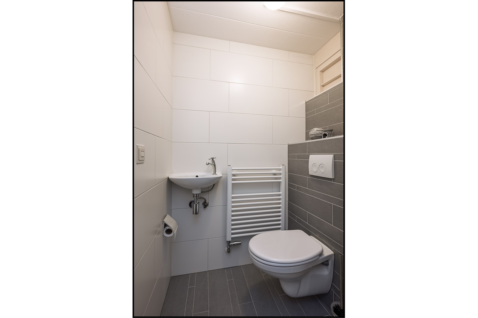 - Fraai afgewerkte toiletruimte met vrijhangend toilet en een designradiator