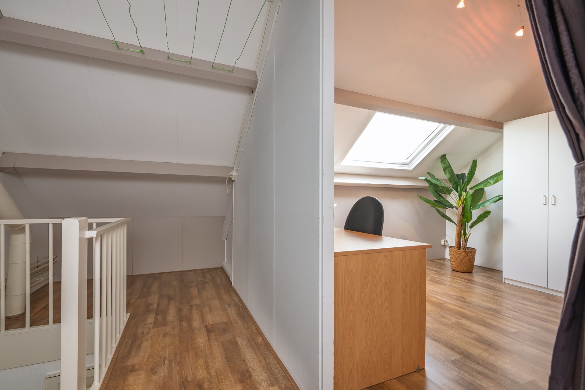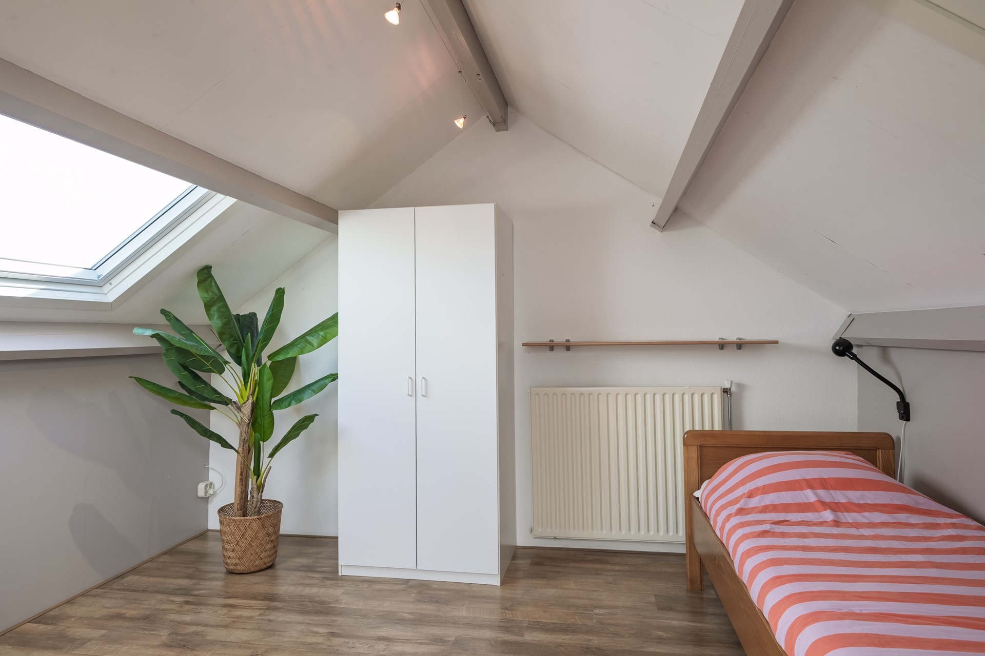 Op de tweede verdieping is een ruime overloop waar voldoende ruimte gecreëerd kan worden voor een complete wasruimte. Tevens bevind hier zich de opstelplaats van de Cv-ketel (Avag ‘2010) en toegang tot de extra slaapkamer. Aan beide kanten van de gehele kamerbreedte bevinden zich riante opbergplaatsen.